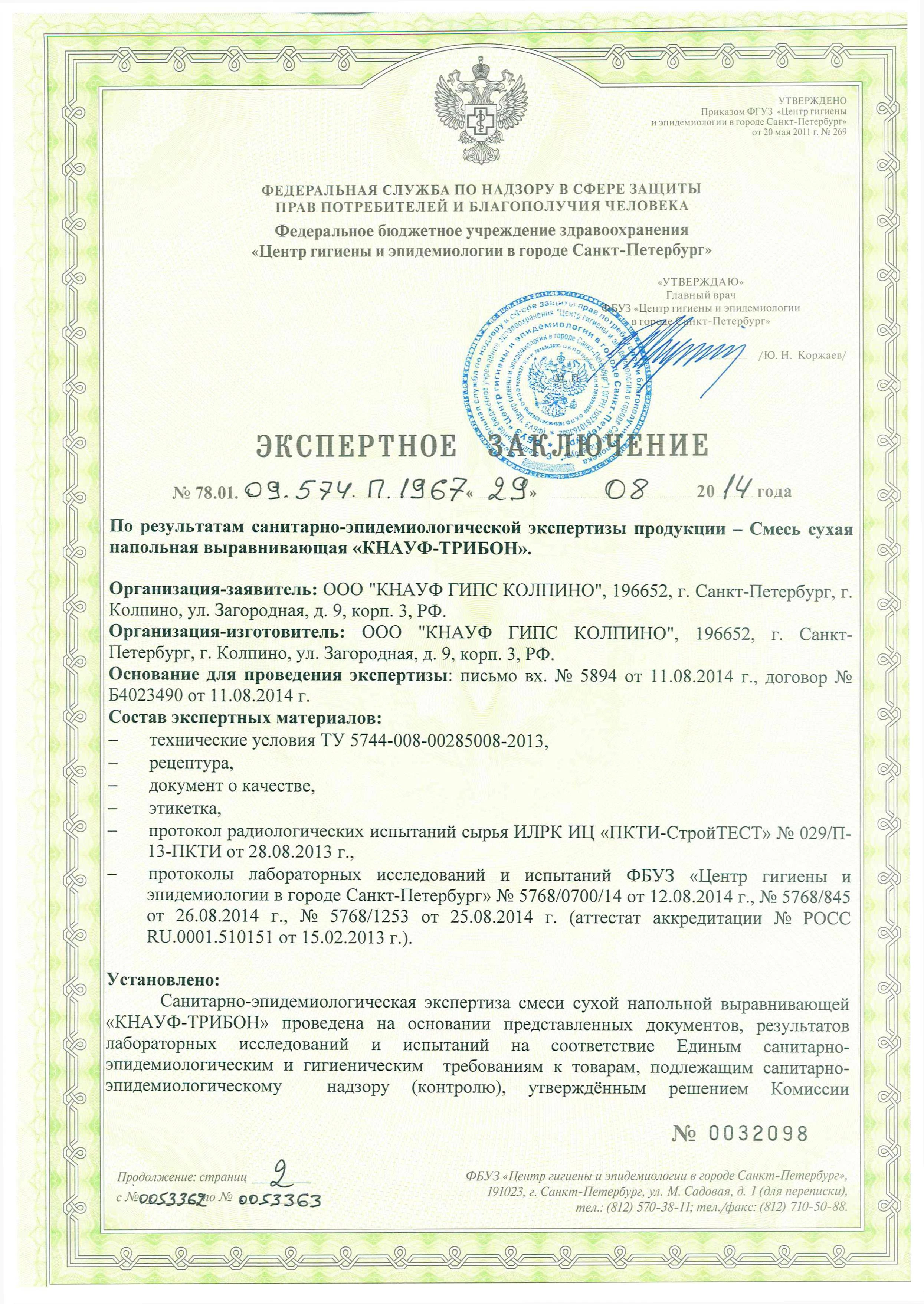 КНАУФ-Трибон — сухая строительная смесь заводского изготовления на основе смешанного (комплексного) вяжущего (строительного гипса и портландцемента), специальных модифицирующих добавок и кварцевого песка в качестве заполнителя. Смесь применяется внутри помещений с сухим, нормальным и влажным (при наличии поверхностной гидроизоляции) влажностными режимами по несущим бетонным и деревянным основаниям для создания выравнивающей стяжки под последующие покрытия. Без дополнительной обработки (в виде шлифования или тонкослойного самонивилирующего слоя) смесь пригодна под укладку большинства финишных покрытий, таких как керамическая плитка, ламинат, паркет (штучный и наборный), паркетная доска, линолеум на подложке