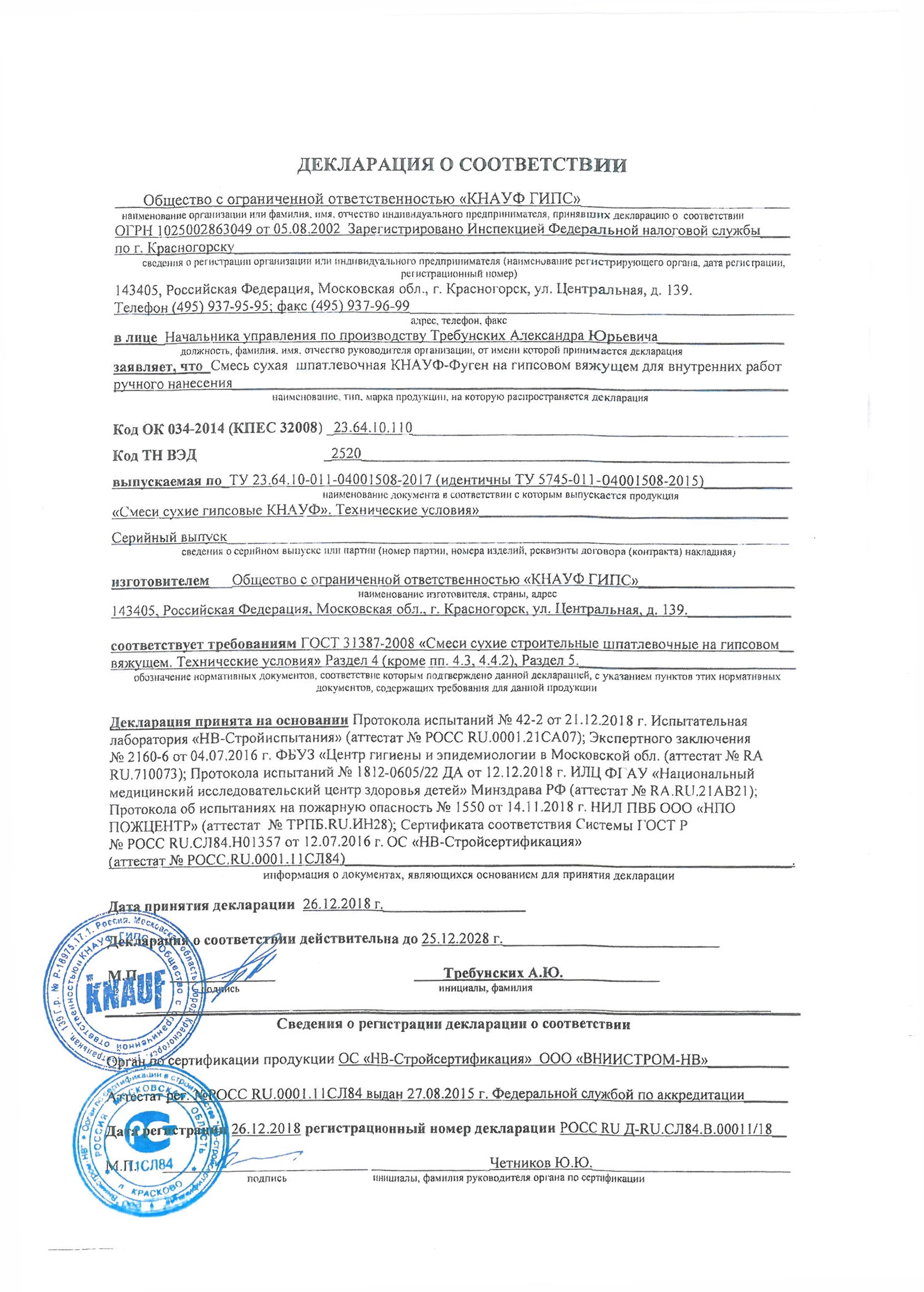 • Перед нанесением декоративного покрытия (краски, обоев, декоративной штукатурки) зашпаклеванную поверхность обработать грунтовкой КНАУФ-Тифенгрунд. При облицовке керамической плиткой участков поверхности КНАУФ-листов, на которые попадает вода, требуется нанесение гидроизоляции КНАУФ-Флэхендихт. Все используемые в процессе работы инструменты и емкости должны быть изготовлены из нержавеющих материалов. Оборудование и инструменты после окончания работ следует сразу же промыть водой.